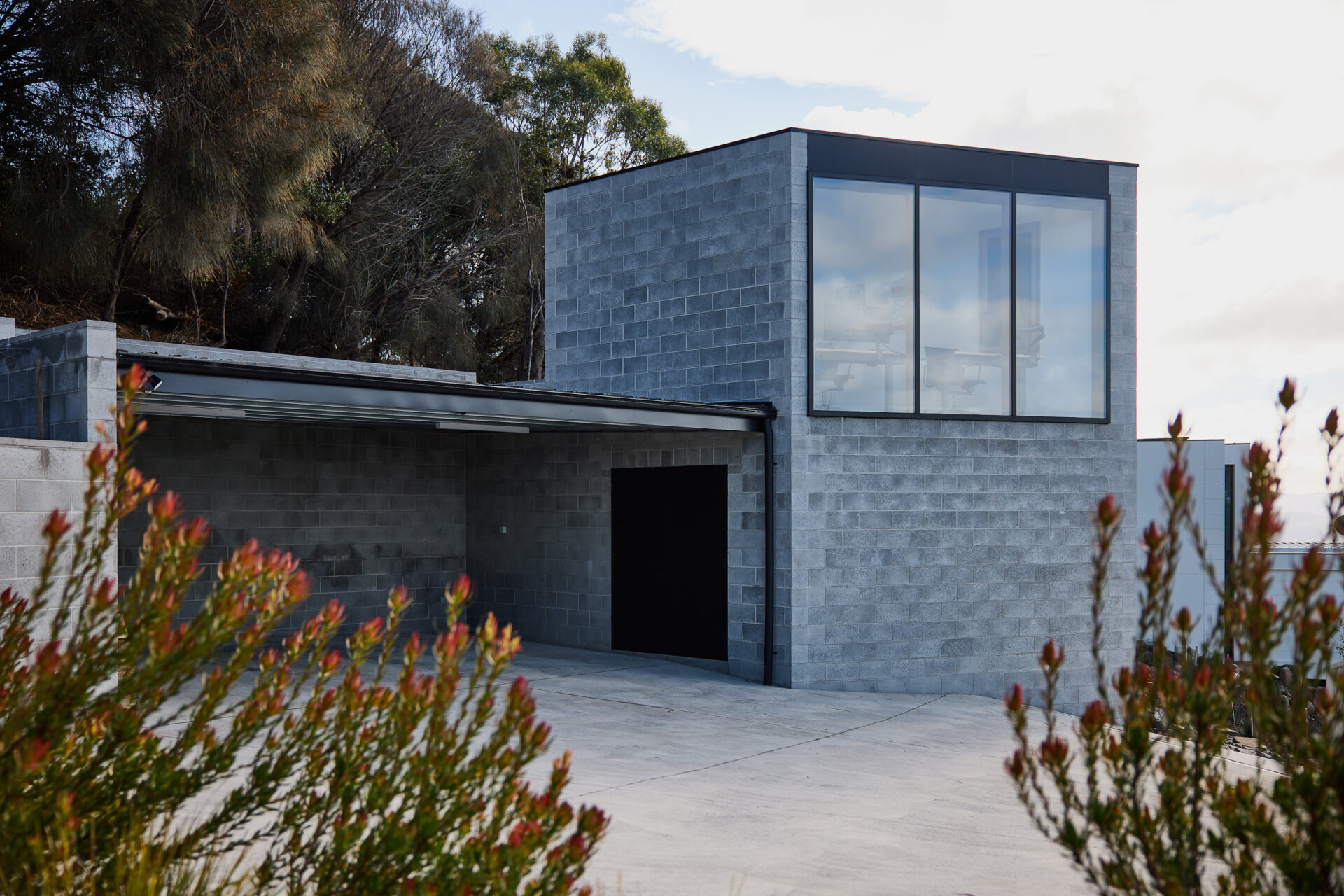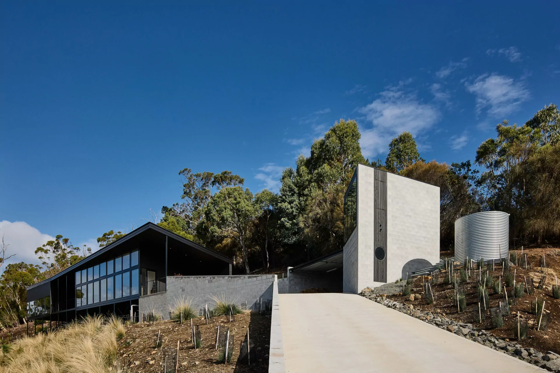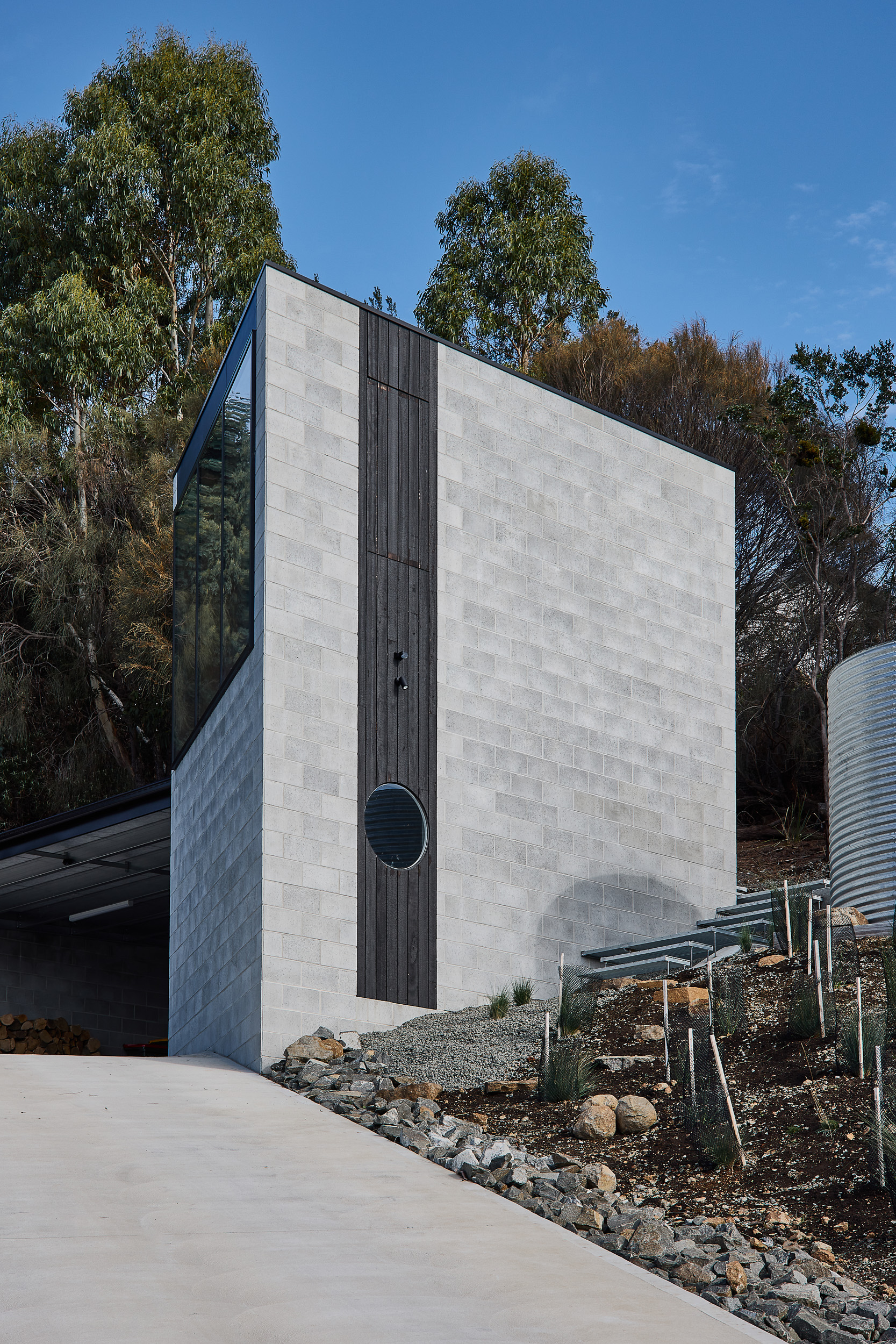 Built to the slope, anchored to the site the Nicholas Drive Project is a clever combination of robust materials, contrast and texture.